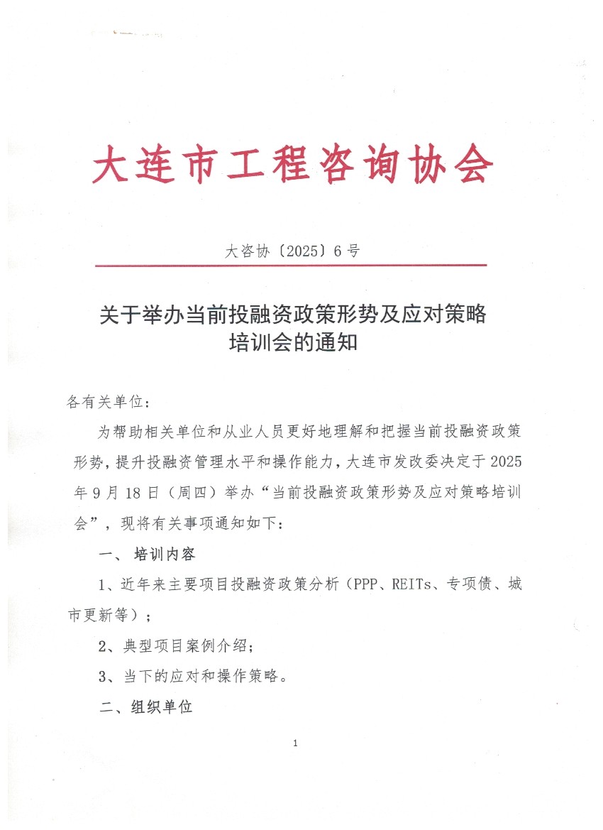 关于举办当前投融资政策形式及应对策略培训会的通知