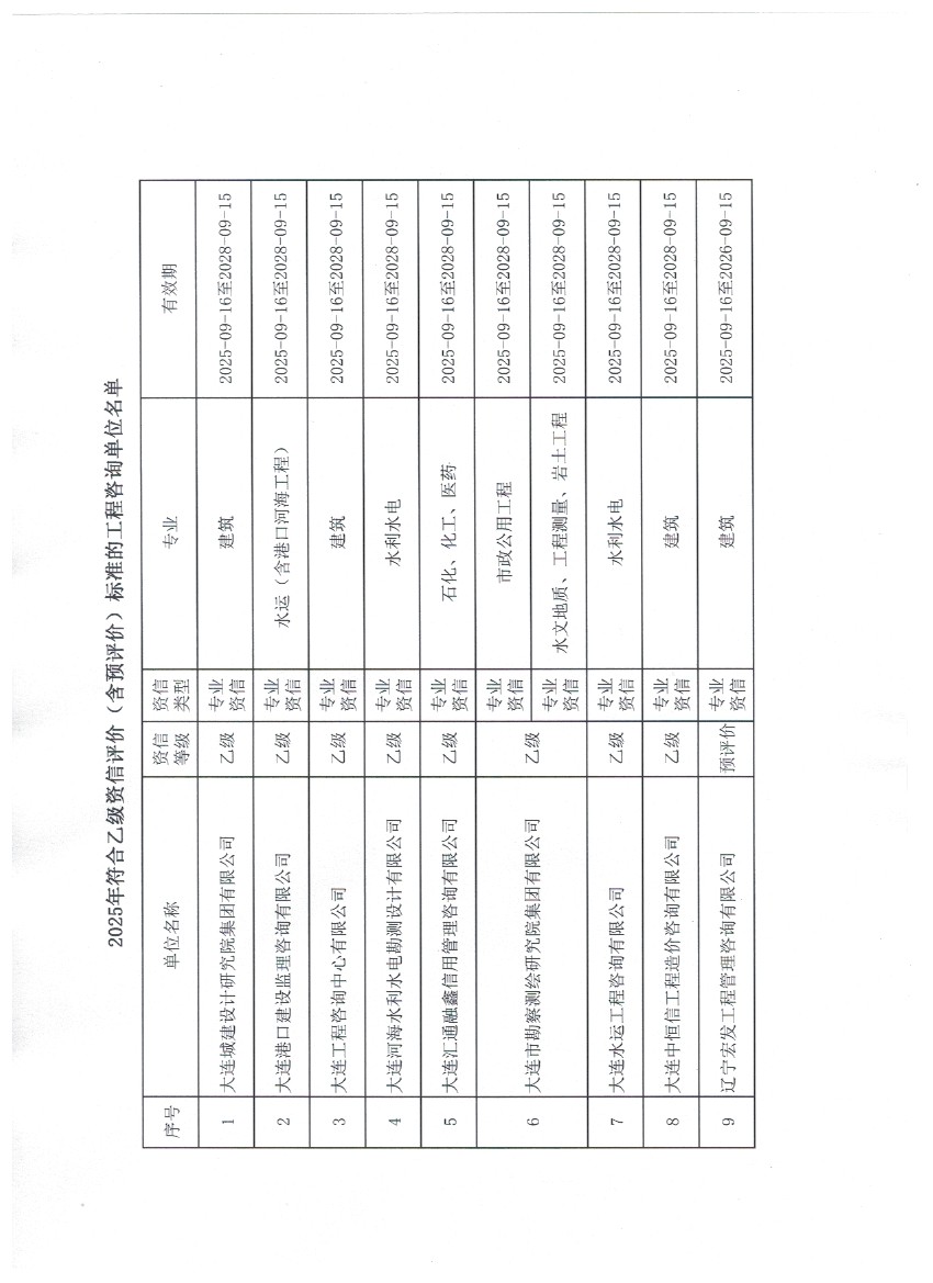 公告大连市2025年工程咨询单位乙级资信评价