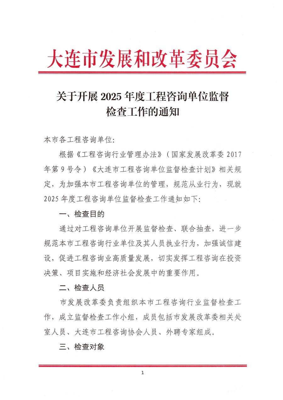 关于开展工程咨询单位2025年度监督检查工作的通知